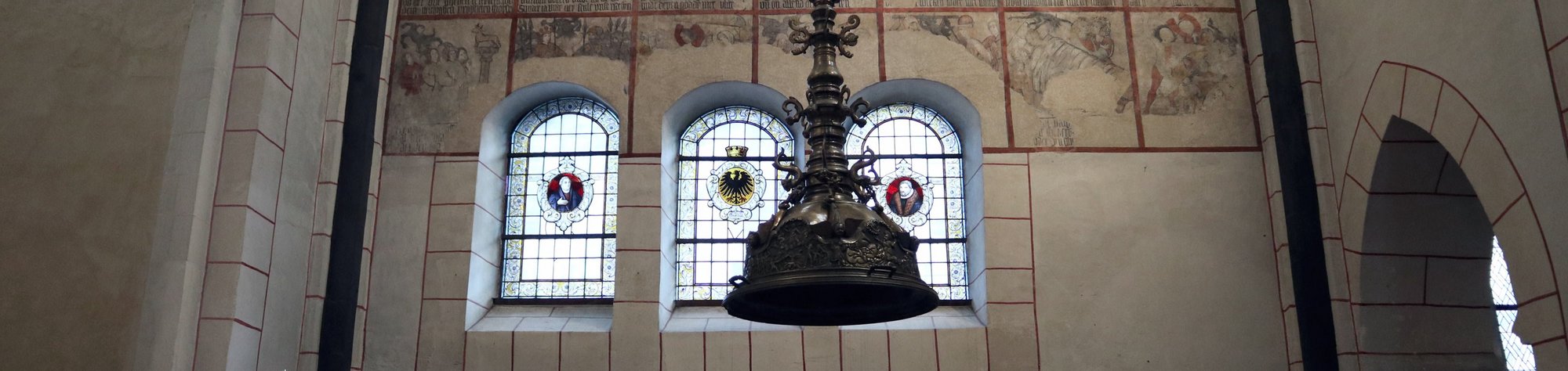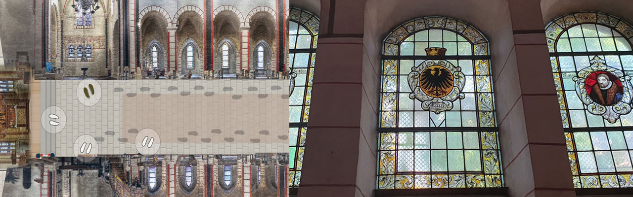 Martin Luther und Nikolaus von Amsdorf, der Reformator Goslars, waren befreundet. Die Stadt Goslar stiftete die Fenster mit dem Bildnis der beiden im Jahr 1907.