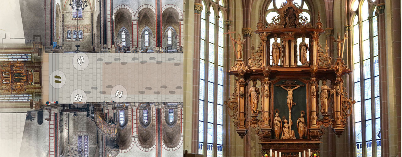 Der Altar aus dem 17. Jahrhundert ist ein geschnitztes Glaubensbekenntnis im Geist der Reformation: Das Kreuz Jesu steht im Mittelpunkt.